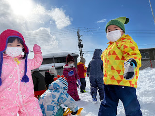 スキーウエアを着て、雪遊びをしました😊